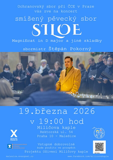 Ochranovský sbor při ČCE v Praze Vás zve na koncert, kde vystoupí smíšený pěvecký sbor Siloe, 19. března 2026 v 19 hod., Milíčova kaple