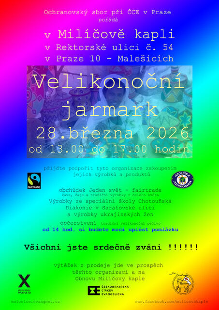 Ochranovský sbor při ČCE v Praze pořádá Velikonoční jarmark, 28. března 2026, od 13.00 hodin do 17.00 hodin, Milíčova kaple